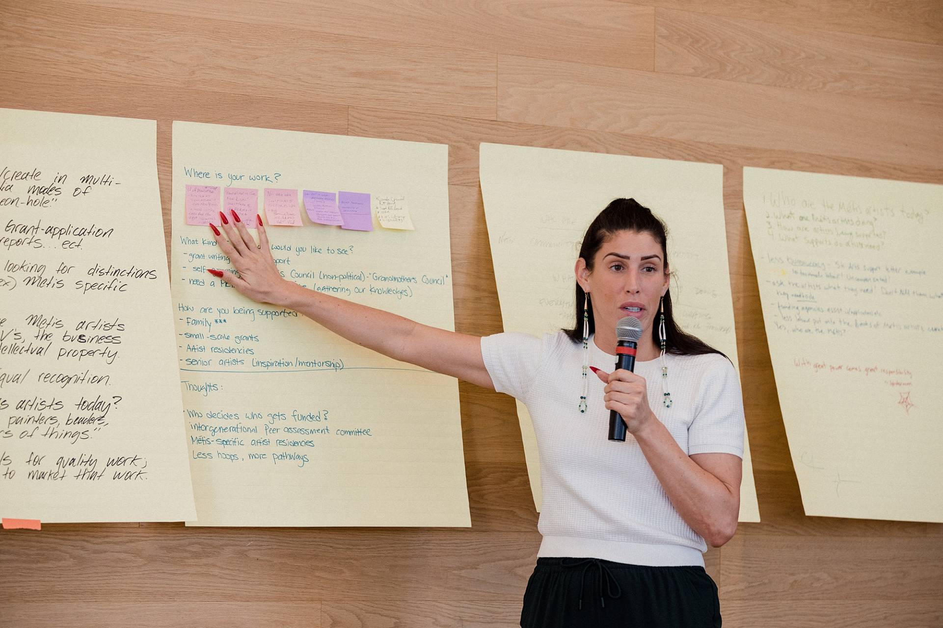 The roundtable considered the following questions: Who is the Métis artist today? What are Métis artists doing? How are Métis artists being supported? What supports do Métis artists need? The pressing issue of self-identification may also be raised.